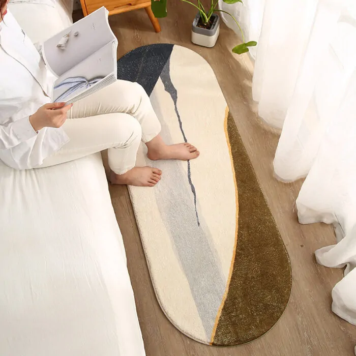 The Luxe Marble Bedside Rug is an elegant addition to any bedroom, designed to keep the chill off and add a touch of luxury to hard floors. Its oval shape and modern simplicity style make it a versatile piece that complements various interior designs. Made from premium acrylic fiber and imitation cashmere, this rug is incredibly soft, absorbent, non-slip, and durable, ensuring long-lasting comfort and functionality.
