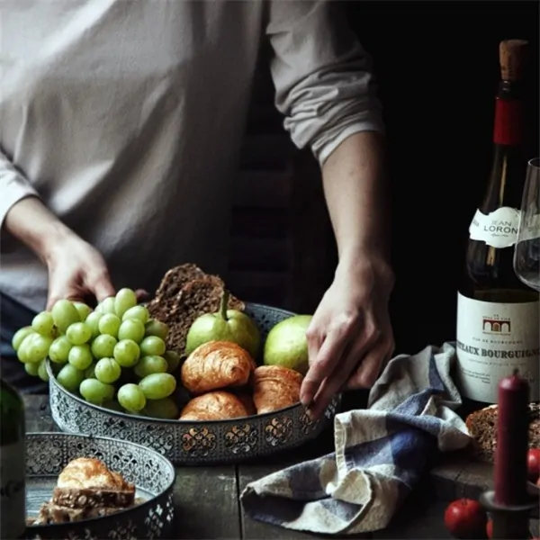 The Rustic Iron Serving Tray is a versatile and stylish addition to any home, ideal for a variety of uses from serving food to organizing essentials. Made from durable metal with a polished finish, this tray is designed in a classic Nordic style with retro influences, ensuring it not only serves its function but also enhances the decor of any space. Whether used in the kitchen, bedroom, or office, this tray combines practicality with rustic elegance.