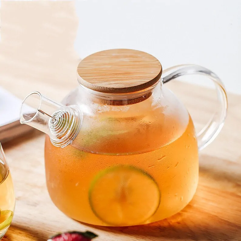 Introducing the Supreme Sipper Heat Resistant Glass Teapot: Elevate your tea rituals with our exquisite Big Heat Resistant Glass Teapot. Designed for tea enthusiasts, this teapot combines a sturdy ceramic base and an oak cushion, ensuring durability. The generous clear glass pot allows for brewing multiple batches of intricate tea blends, impressing both guests and tea connoisseurs alike. With its captivating design and customizable color options, this teapot effortlessly enhances any kitchen countertop or cabinet display. Crafted with premium materials, it guarantees top-notch quality, exceptional durability, and utmost safety. Experience the ultimate tea-drinking upgrade with our Supreme Sipper Heat Resistant Glass Teapot!