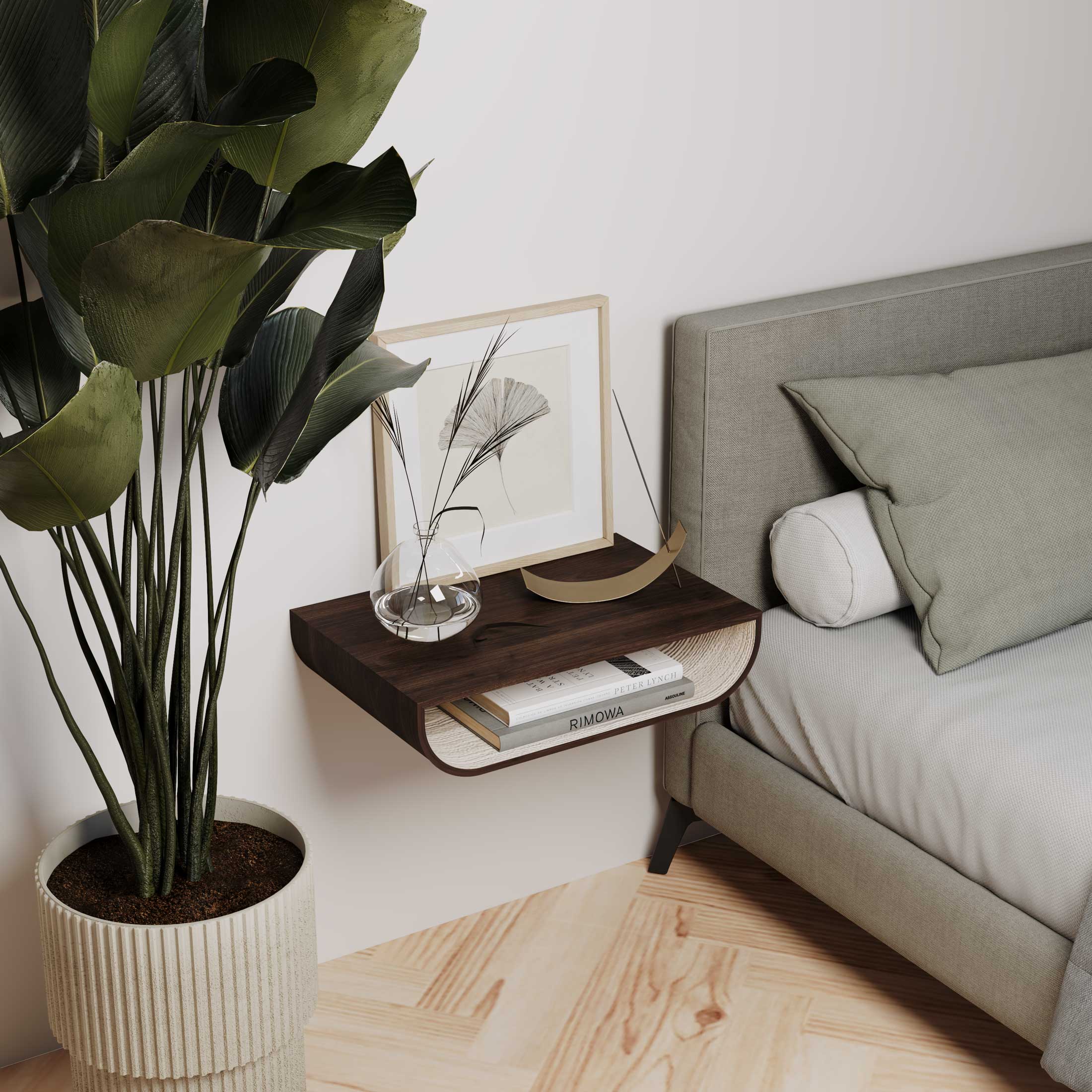 These wood veneer nightstands are made to last and suit anyone who prefers simple, well-designed pieces that don’t feel heavy in the room. Their slim, understated look works especially well in Scandinavian-inspired interiors, keeping the overall furniture footprint light and minimal. By choosing something sleek rather than bulky, the bedroom stays calm and uncluttered — creating a more relaxed, natural feel that fits easily into modern living.